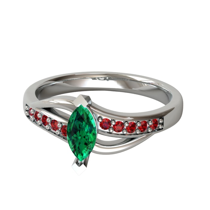 Yeşil kuvars ve garnet 8 ayar beyaz altın yüzük