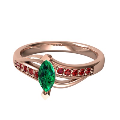 Yeşil kuvars ve garnet 925 ayar rose altın kaplama gümüş yüzük