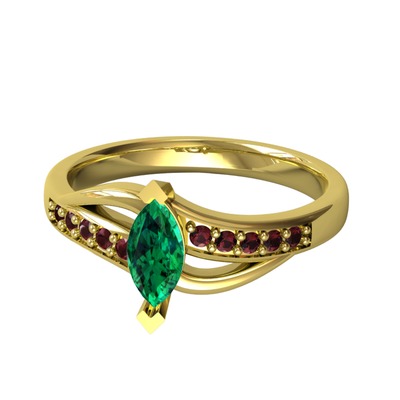 Yeşil kuvars ve kök yakut 8 ayar altın yüzük
