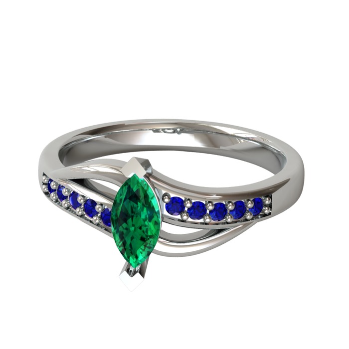 Yeşil kuvars ve lab safir 14 ayar beyaz altın yüzük