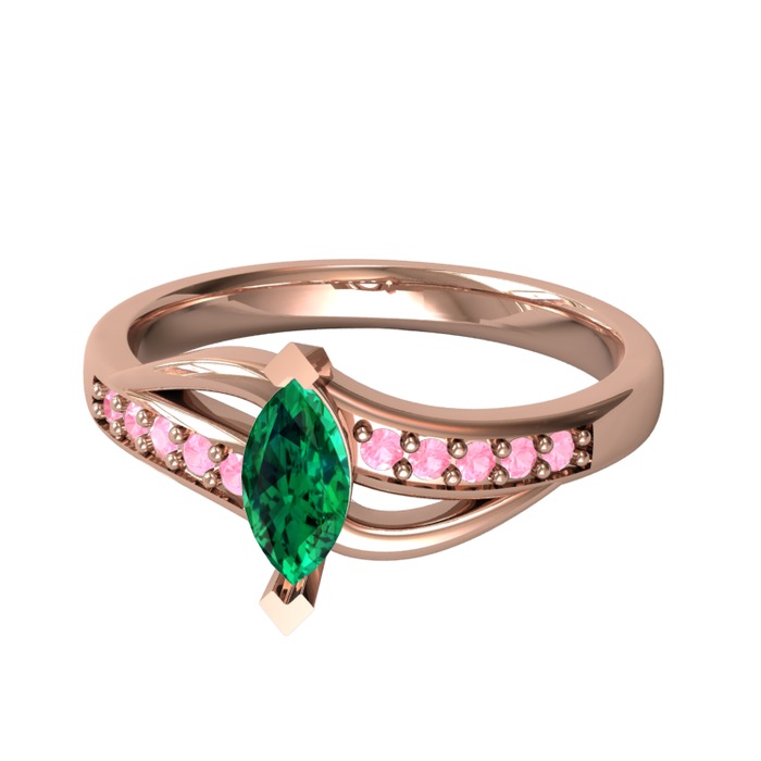 Yeşil kuvars ve pembe kuvars 18 ayar rose altın yüzük