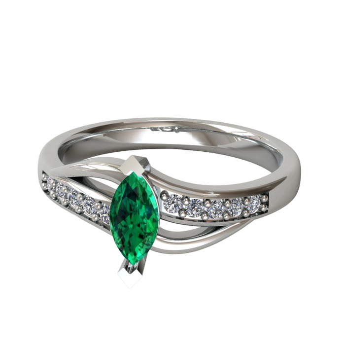 Yeşil kuvars ve pırlanta 14 ayar beyaz altın yüzük (0.15 karat)