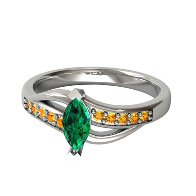 Yeşil kuvars ve sitrin 14 ayar beyaz altın yüzük