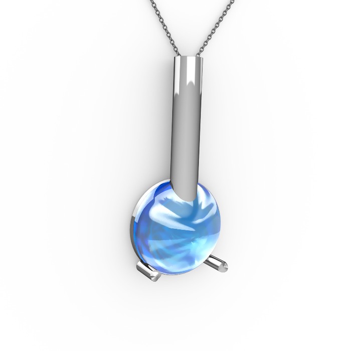 Akuamarin 18 ayar beyaz altın kolye (40 cm gümüş rolo zincir)