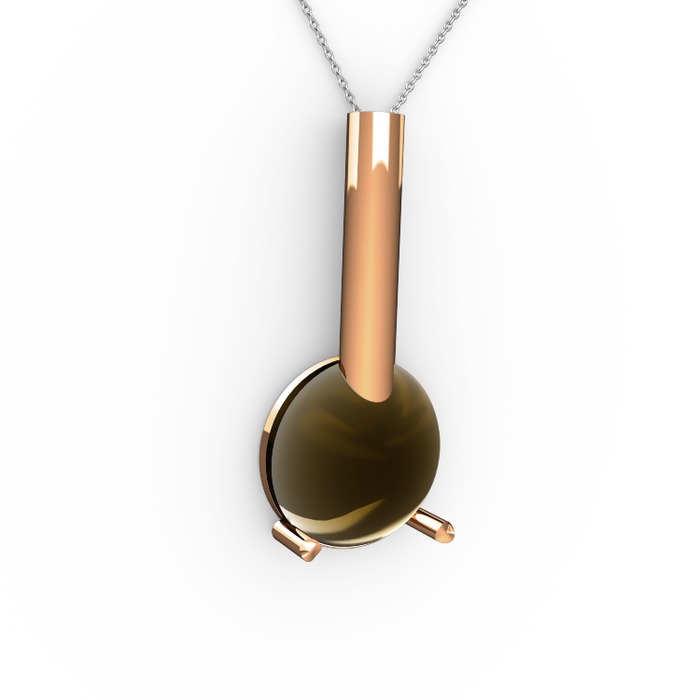 Dumanlı kuvars 14 ayar rose altın kolye (40 cm gümüş rolo zincir)