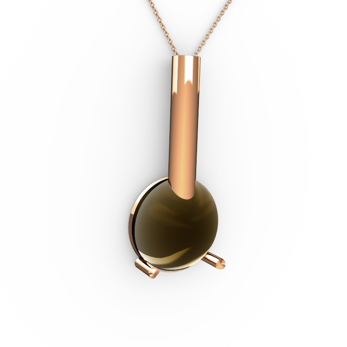 Dumanlı kuvars 14 ayar rose altın kolye (40 cm rose altın rolo zincir)