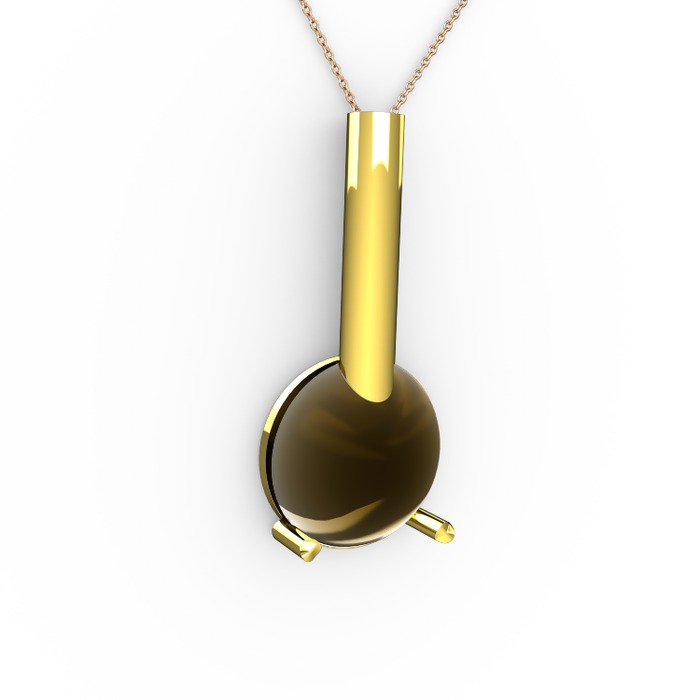Dumanlı kuvars 925 ayar altın kaplama gümüş kolye (40 cm rose altın rolo zincir)