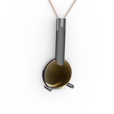 Dumanlı kuvars 925 ayar siyah rodyum kaplama gümüş kolye (40 cm rose altın rolo zincir)