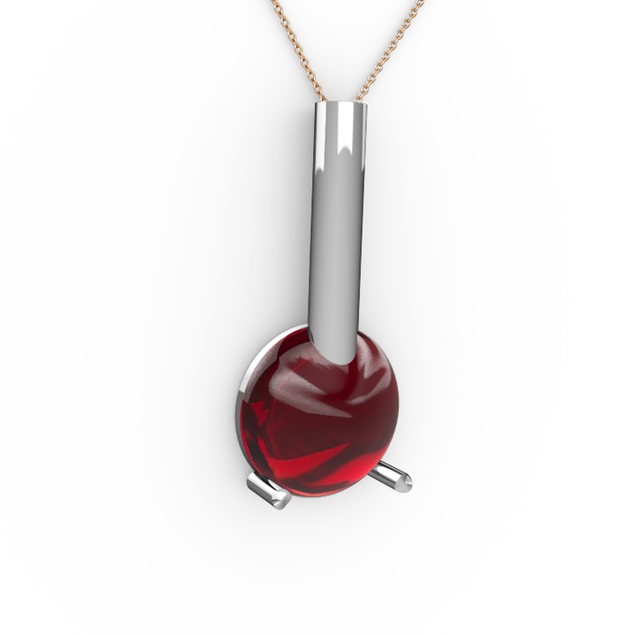 Garnet 18 ayar beyaz altın kolye (40 cm rose altın rolo zincir)