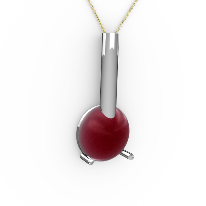 Kök yakut 18 ayar beyaz altın kolye (40 cm altın rolo zincir)