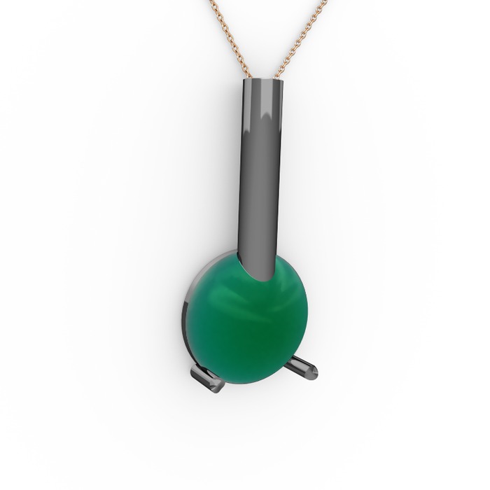 Kök zümrüt 925 ayar siyah rodyum kaplama gümüş kolye (40 cm rose altın rolo zincir)