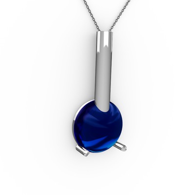 Lab safir 18 ayar beyaz altın kolye (40 cm gümüş rolo zincir)