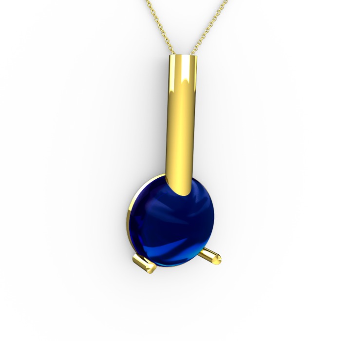 Lab safir 8 ayar altın kolye (40 cm gümüş rolo zincir)