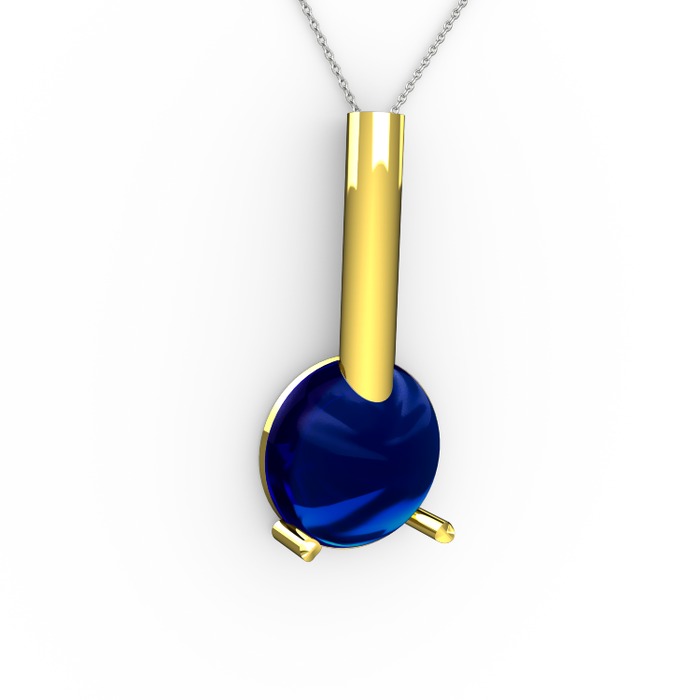 Lab safir 925 ayar altın kaplama gümüş kolye (40 cm beyaz altın rolo zincir)