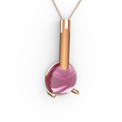 Pembe kuvars 18 ayar rose altın kolye (40 cm gümüş rolo zincir)