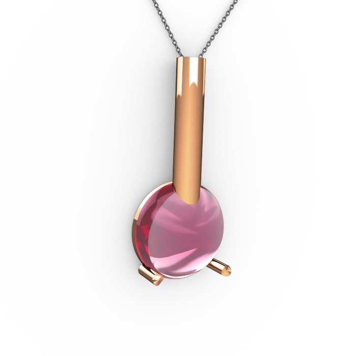 Pembe kuvars 18 ayar rose altın kolye (40 cm gümüş rolo zincir)