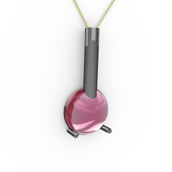 Pembe kuvars 925 ayar siyah rodyum kaplama gümüş kolye (40 cm gümüş rolo zincir)