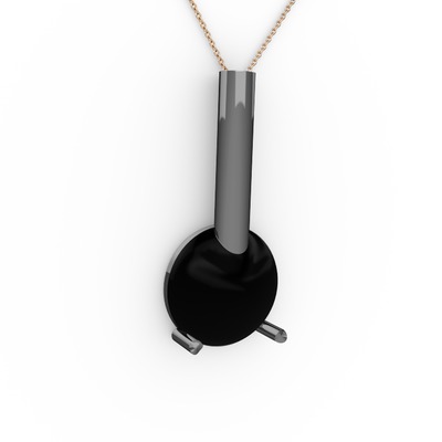 Siyah zirkon 925 ayar siyah rodyum kaplama gümüş kolye (40 cm rose altın rolo zincir)