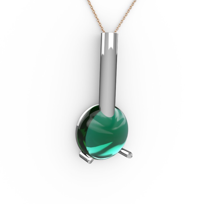 Yeşil kuvars 18 ayar beyaz altın kolye (40 cm gümüş rolo zincir)