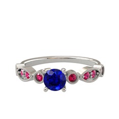 Lab safir ve rodolit garnet 18 ayar beyaz altın yüzük
