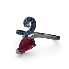 Lab safir ve rodolit garnet 925 ayar siyah rodyum kaplama gümüş yüzük