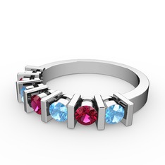Rodolit garnet ve akuamarin 8 ayar beyaz altın yüzük