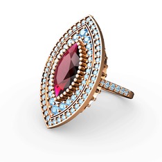 Akuamarin ve rodolit garnet 8 ayar rose altın yüzük