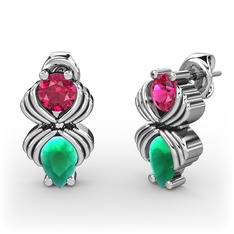 Kök zümrüt ve rodolit garnet 8 ayar beyaz altın küpe