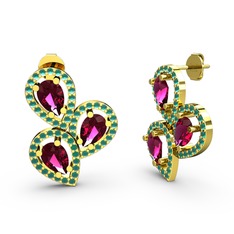 Pembe inci ve rodolit garnet 14 ayar altın küpe
