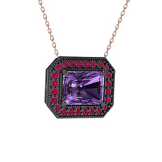 Ametist ve rodolit garnet 925 ayar siyah rodyum kaplama gümüş kolye (40 cm rose altın rolo zincir)