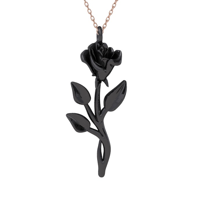 925 ayar siyah rodyum kaplama gümüş kolye (40 cm rose altın rolo zincir)