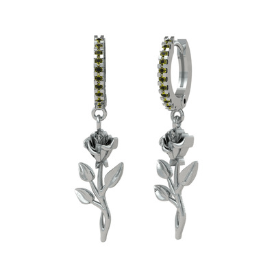 Peridot 14 ayar beyaz altın küpe
