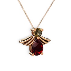 Garnet ve yeşil kuvars 925 ayar rose altın kaplama gümüş kolye (40 cm gümüş rolo zincir)
