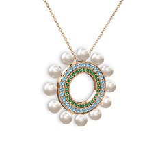 Yeşil kuvars, lab safir ve inci 925 ayar rose altın kaplama gümüş kolye (40 cm gümüş rolo zincir)