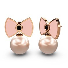 Inci ve siyah zirkon 925 ayar rose altın kaplama gümüş küpe