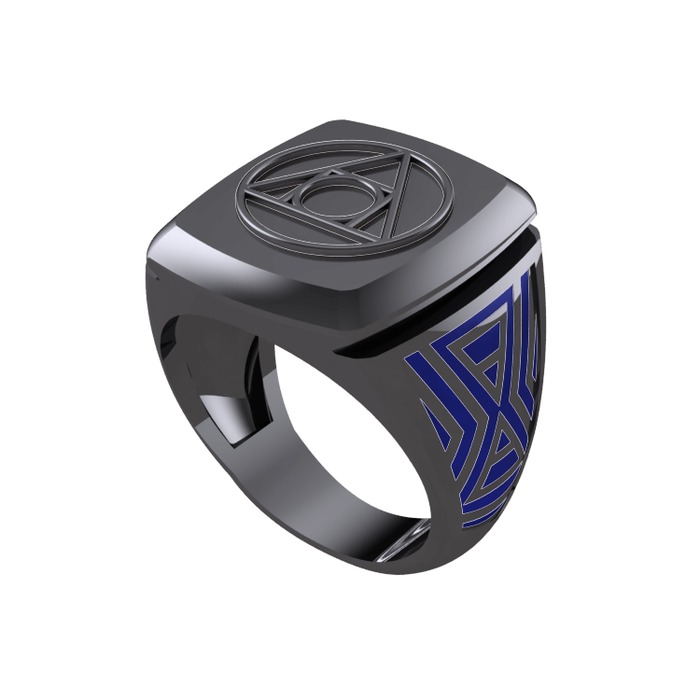 925 ayar siyah rodyum kaplama gümüş yüzük (Lacivert mineli)