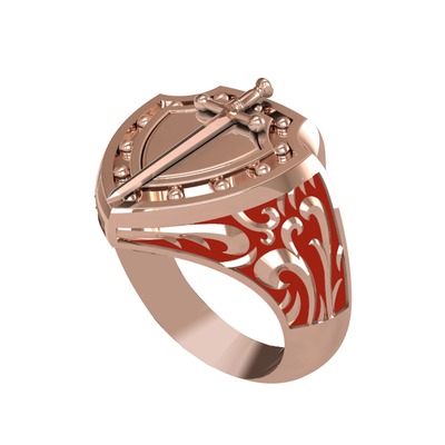 Runa Şövalye Yüzük - 8 ayar rose altın yüzük (Kırmızı mineli)