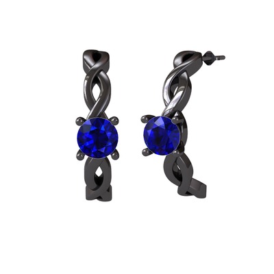 Lab safir 925 ayar siyah rodyum kaplama gümüş küpe