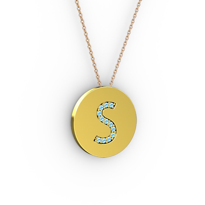 Akuamarin 14 ayar altın kolye (40 cm rose altın rolo zincir)