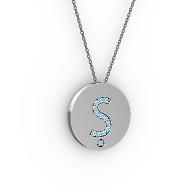 Akuamarin 18 ayar beyaz altın kolye (40 cm gümüş rolo zincir)