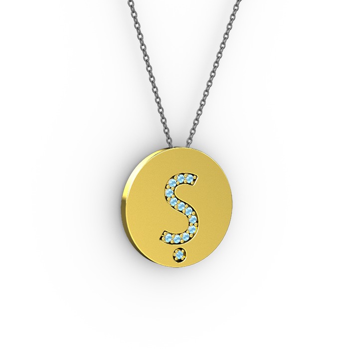 Akuamarin 925 ayar altın kaplama gümüş kolye (40 cm gümüş rolo zincir)