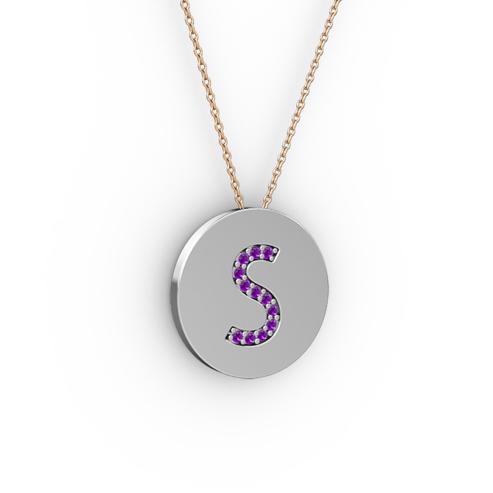 Ametist 18 ayar beyaz altın kolye (40 cm gümüş rolo zincir)