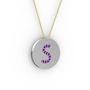 Ametist 8 ayar beyaz altın kolye (40 cm altın rolo zincir)