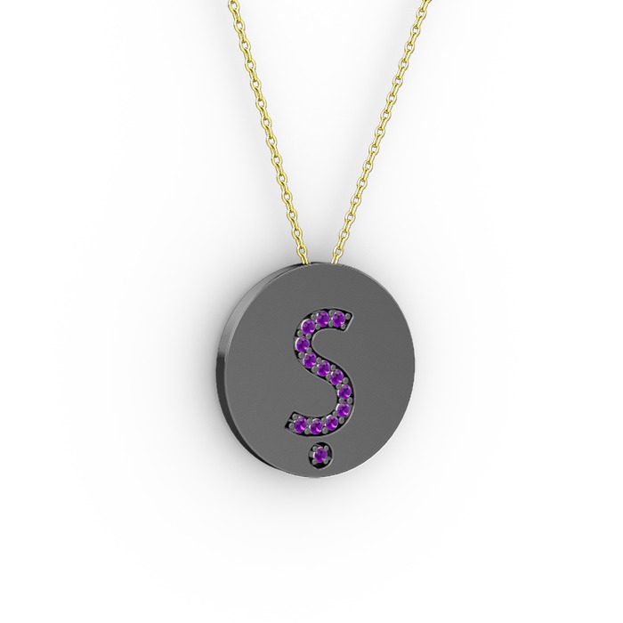 Ametist 925 ayar siyah rodyum kaplama gümüş kolye (40 cm gümüş rolo zincir)