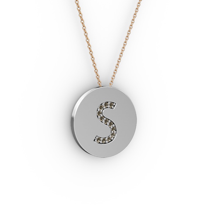 Dumanlı kuvars 18 ayar beyaz altın kolye (40 cm gümüş rolo zincir)