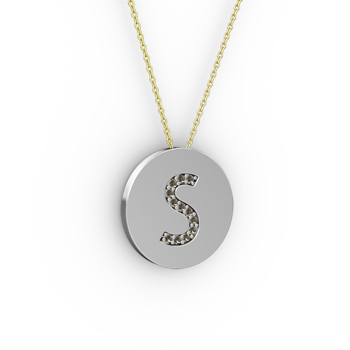 Dumanlı kuvars 8 ayar beyaz altın kolye (40 cm altın rolo zincir)