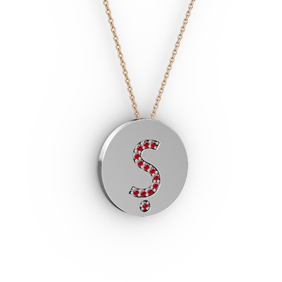 Garnet 14 ayar beyaz altın kolye (40 cm gümüş rolo zincir)