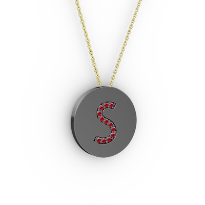 Garnet 925 ayar siyah rodyum kaplama gümüş kolye (40 cm altın rolo zincir)