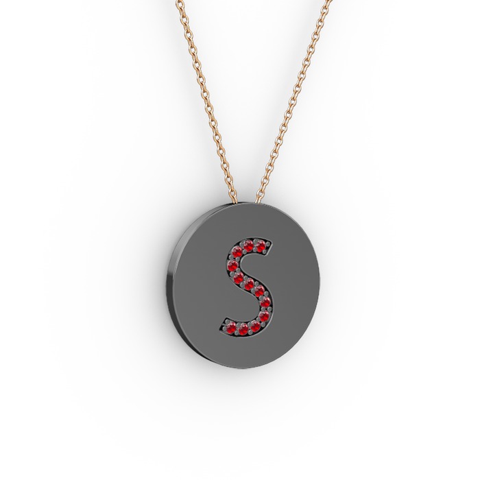 Garnet 925 ayar siyah rodyum kaplama gümüş kolye (40 cm rose altın rolo zincir)