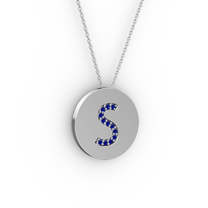 Lab safir 8 ayar beyaz altın kolye (40 cm gümüş rolo zincir)